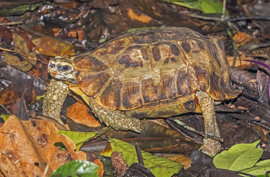 La Kinixys homeana è una testuggine di medie dimensioni appartenente alla famiglia Testudinidae, diffusa nelle foreste tropicali dell’Africa occidentale e centrale, dal Ghana al Camerun. Si tratta di una delle poche testuggini africane adattate a vivere in ambienti umidi, dove trascorre gran parte del tempo tra il sottobosco e la lettiera forestale, sfruttando l’umidità per termoregolarsi e proteggersi dalla disidratazione.