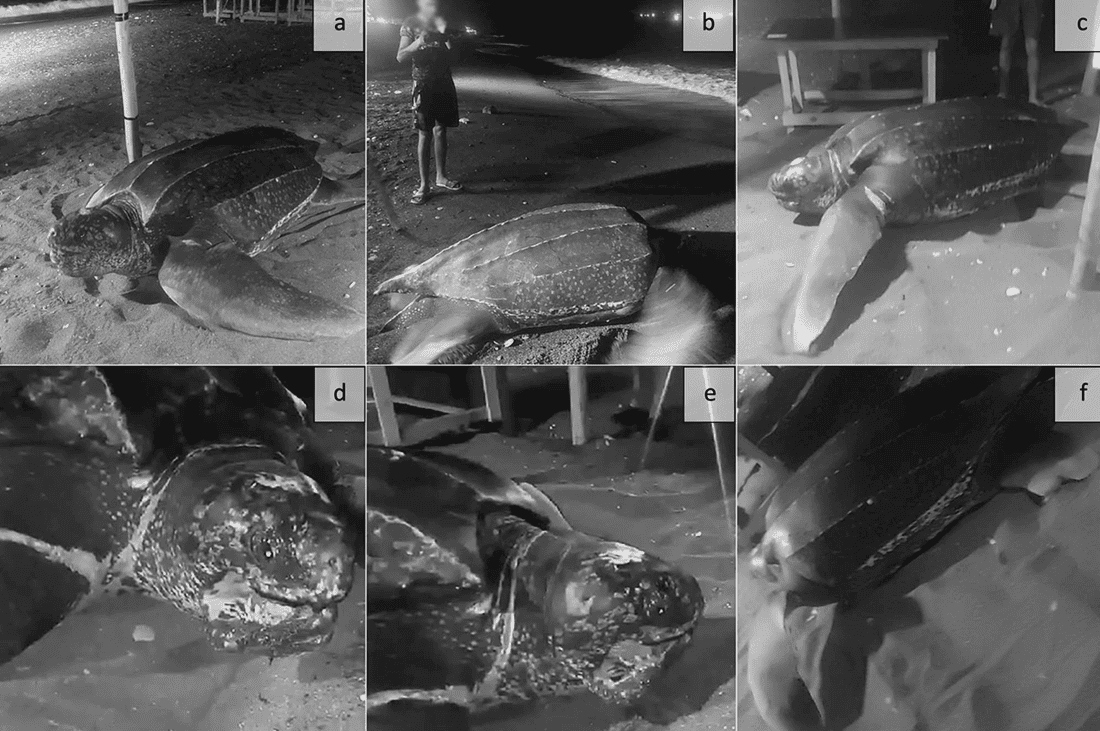 L’osservazione è avvenuta nella notte del 3 luglio 2024 a Wadi Kandil, sulla costa settentrionale della Siria. Una femmina adulta di Dermochelys coriacea è emersa dalla battigia poco dopo la mezzanotte, abbattendo tavoli e sedie presenti sulla spiaggia e attirando l’attenzione dei residenti. I testimoni hanno fornito fotografie e video successivamente analizzati dagli autori dello studio.